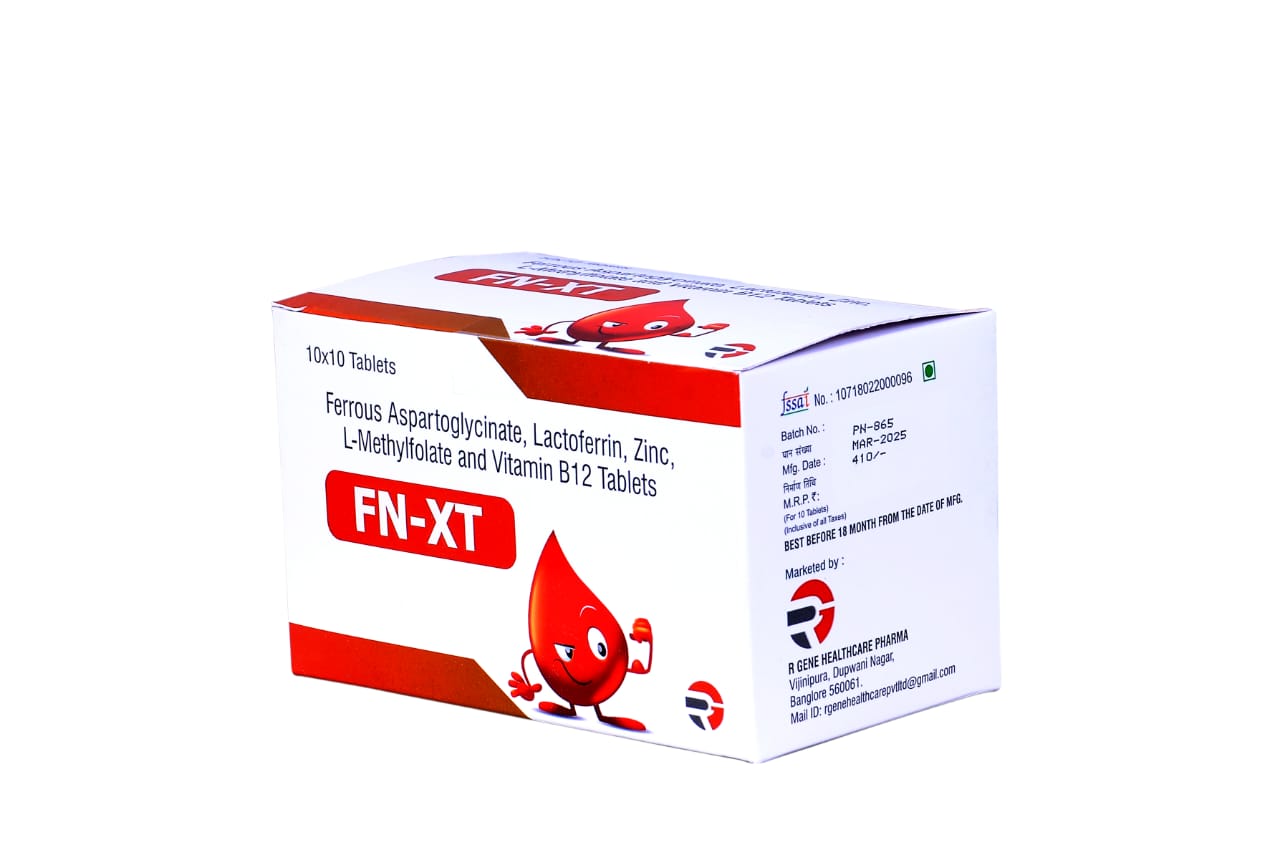 FN-XT provides Ferrous Aspartoglycinate, Lactoferrin, Zinc, L-Methylfolate, and Vitamin B12 for the prevention and management of iron-deficiency anemia, promoting healthy blood formation and energy levels.